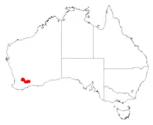 It is native to an area in the Wheatbelt region of Western Australia where is commonly situated on low ridges and rises growing in clay soils with lateritic gravel.[1] It is found around the Bruce Rock area in areas to the south west of Hyden where it is a part of open heathland communities.[2]