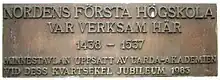 A sign in Klostergatan ("Monastery street"), Lund, marking the location of the Academy of Lund.