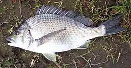 - ↑ Parenti, P. (2019). "An annotated checklist of the fishes of the family Sparidae". FishTaxa. 4 (2): 47–98.