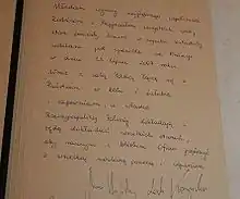 President Kaczynski's entry in a condolence book for the victims