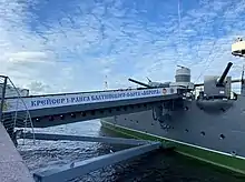 Accommodation ladders can be mounted parallel or perpendicular to the ship's board. If the ladder is parallel to the ship, it has to have an upper platform. Upper platforms are mostly turnable. The lower platform (or the ladder itself) hangs on a bail and can be lifted as required.