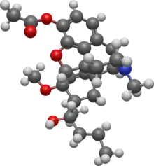 Acetorphine is a potent opioid analgesic, up to 8700 times stronger than morphine by weight.[1] It is a derivative of the more well-known opioid etorphine, which is used as a very potent veterinary painkiller and anesthetic medication, primarily for the sedation of large animals such as elephants, giraffes and rhinos.