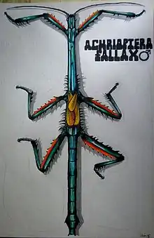 - ↑ Glaw, Frank; Hawlitschek, Oliver; Dunz, Andreas; Goldberg, Julia; Bradler, Sven (2019-04-02). "When Giant Stick Insects Play With Colors: Molecular Phylogeny of the Achriopterini and Description of Two New Splendid Species (Phasmatodea: Achrioptera) From Madagascar". Frontiers in Ecology and Evolution. doi:10.3389/fevo.2019.00105.