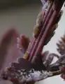 Acizzia acaciaebaileyanae is a psyllid common on Acacia baileyana, a popular garden specimen.[2][3] They have also been associated with Acacia podalyriifolia.[2][3] The psyllid and its host plant are native to Australia, but both are now widespread where the plant has been introduced including New Zealand, South Africa, Italy, and California, USA.[3] The psyllid can reproduce to very high numbers, but appears not to damage the plant.