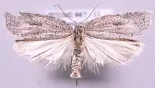 The wingspan is 26–28 mm. Adults are on wing from September to March.