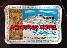 - 1 2 Areti, Kotseli (July 21, 2012). "Greek "Acropole Hotel" in the Heart of Sudan". Greek Reporter World. Retrieved 4 June 2018.