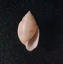 The aperture is elongated.[2] The narrow shell aperture, which is ovate and pointed on the top, can be closed with an operculum.