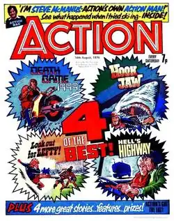 Action was a British weekly boys' comic published by IPC Magazines from 14 February 1976 to 5 November 1977, when it merged with war comic Battle after 86 issues. The comic was created by Pat Mills and Geoff Kemp.