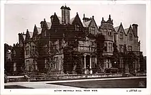 The Corbet family abandoned nearby Moreton Corbet Castle as a residence in about 1800 after their 17th-century hall had been enlarged and improved for their occupation. Sir Andrew Corbet retained architect John Hiram Haycock (1759–1830), who created the new mansion in a Neo-Jacobean style.[1] The seven-bayed, three-storey eastern entrance front retains three bays and a Tuscan portico dating from 1610 and 1625.[2] The main block, dating from about 1800, was later extended by service wings in about 1840 and other improvements in 1893.[1]