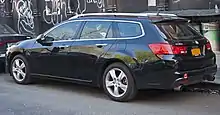 The Acura TSX Sport Wagon is a badge-engineered version of CL-series Honda Accord Tourer station wagon.[29] The Sport Wagon was unveiled in the 2010 New York Auto Show.[30] The TSX Sportwagon is mechanically identical to the TSX Sedan, sharing the 201-horsepower Honda K engine 2.4L DOHC inline four-cylinder engine, Sequential SportShift 5-speed automatic transmission, and four-wheel independent sports suspension, however unlike the sedan the Sport Wagon is not offered with the 6-speed manual transmission nor the V6 engine. [31][32] The Sport Wagon offers 60.5 cu-ft of rear cargo area (with rear seats folded down; 25.8 cu-ft with the seats up), rear seats with 60/40 fold-down design.