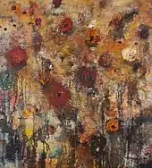 His work combines abstract tradition with a sensibility to the present moment that is the result of an affinity for Eastern spiritual teachings. His paintings have lush surfaces built up over the course of 3 to 5 years or more, and a luminous tension that evokes a deep emotional response in the viewer.[3]