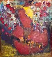His work expands the tradition of abstraction by reliance on classical painterly techniques and a view towards the referential. He has explored numerous directions loosely referred to as landscape, flowers, trees, and work using language as an element.