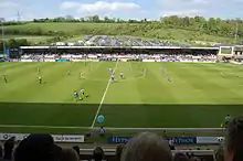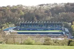 Originally called the Valley End, the BMI Healthcare Terrace is the home supporters' end for football matches, and the only remaining standing accommodation in the stadium. The original licensed capacity of the terrace was 2,136; however, this was reduced by the club to 1,717 to maintain a total licensed capacity for the whole stadium of 10,000 after the extension of the Hillbottom Road end by 1,000 seats in 2001.[5] After the Sports Grounds Safety Authority re-evaluated the extent of the viewing area on the Valley End that was permitted to be included in the total capacity calculation in October 2015, the terrace's maximum capacity was provisionally reduced from 2,131 (officially licensed 1,717) to 1,494[7] pending remedial work to be carried out by the club in the near future.