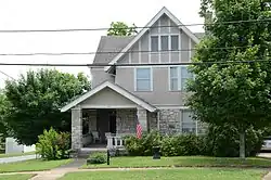 It is a 2+12-story structure, built out of coursed rubble limestone, material also used in the chimney and porch piers. It has a cross-gable roof configuration, with the front gable decorated with applied half-timbering over stucco. Below and left of the gable is the entry porch, also with a gabled roof. The house was designed by Theodore Sanders and built c. 1915. It is a high quality local example of Craftsman architecture.[2]