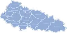 Until June 2020, Zakarpattia Oblast was subdivided into 18 regions: 13 districts (raions) and 5 city municipalities (mis'krada or misto), officially known as territories governed by city councils.[3]