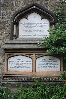 He died unmarried on 3 December 1871, aged 75.[1] He is buried with his brother in the eastern enclosure of St John's Episcopal Church, Edinburgh (on Princes Street). Some references place him in the immediately adjacent churchyard: St Cuthberts.