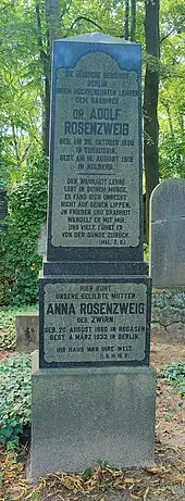 Rabbi Dr. Adolf Rosenzweig (October 20, 1850 – August 16, 1918[1]) was a German moderate liberal rabbi and Biblical and Talmudic scholar. In his publications he dealt with historical and archaeological matters.