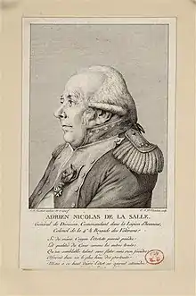 Adrien-Nicolas Piédefer, marquis de La Salle, comte d'Offrémont (1735 – 1818) was a French writer and cavalry officer who saw service in the Seven Years' War, a writer of comedies and libretti, and a Masonic brother of Benjamin Franklin.