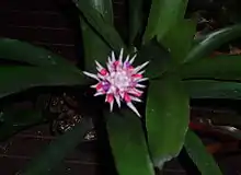 Aechmea dealbata is a bromeliad in the subfamily Bromelioideae. This plant species has spiny green foliage with a complex pink and purple inflorescence. It is epiphytic but will grow in soil and is commonly cultivated. This species is endemic to the State of Rio de Janeiro in Brazil.[1][2]
