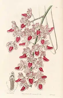 Aerides maculosa is a species of orchid endemic to India.[2] The epithet "maculosa" means "spotted", in reference to the colored spots on the tepals.[3]