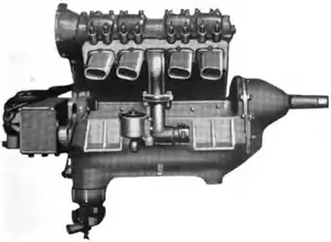 The Aeromarine B-45 is an aircraft engine built by the Aeromarine Plane and Motor Company in 1915. The B-45 shares the same bore, stroke and valve configuration as the B-90, except in a 45° Vee configuration. The other primary difference are cast aluminum cylinders in place of the B-90's cast iron resulting in a 40 lb (18 kg) weight savings.[1][2]