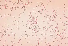 Aeromonas is a genus of Gram-negative, facultative anaerobic, rod-shaped, bacteria that morphologically resemble members of the family Enterobacteriaceae. Most of the 14 described species have been associated with human diseases. The most important pathogens are A. hydrophila, A. caviae, and A. veronii biovar sobria. The organisms are ubiquitous in fresh and brackish water.[2]