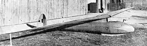 The competition stipulated the 15 m (49 ft 3 in) span gliders had to be wooden, though fabric covering could be used.[1] Its cantilever wing was built around a single spar[2] with plywood skinning around the wing forward of it. The wing was attached to a pylon about 230 mm (9 in) above the fuselage and at the centreline the wing ply extended back to about 70% chord, returning to the spar about 1 m (3 ft 3 in) along it. The wing planform was strongly double straight tapered, mostly on the trailing edge where ailerons occupied almost half the span.[1] These were split into two nearly equal sections and acted differentially. Parallel ruler type airbrakes were placed a little inboard of the ailerons, at mid-chord.[2] Near the roots the airfoil section was NACA 4514; further out this was tapered into the symmetric NACA 0012 of the tips, which had 4° of washout to prevent tip stalling.[1]