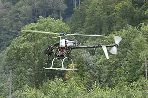 The Aeroscout Scout B1-100 is a small Swiss unmanned helicopter drone developed for aerial mapping, surveillance, law enforcement and other roles.