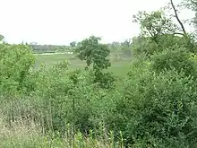 Aetna was founded in 1881 as a company town for the Aetna Powder Company, a munitions manufacturer.[6] The location was chosen in part for its remoteness, in rolling dune and swale country nearly a mile from the small town of Miller. The factory employed about 500 workers, most of whom lived in Aetna although some commuted from nearby towns. Originally the munitions had to be carted to the train station in Miller for shipment, but the arrival of the Wabash Railroad in 1895 gave Aetna its own train station.[7] The plant suffered from frequent violent explosions, often fatal; a 1912 explosion caused six deaths, and another in 1914 broke windows as far away as downtown Gary. During World War I, the factory employed 1200 people.[7] However, it closed after the war, and Aetna's population shrank to fewer than 100.[8]