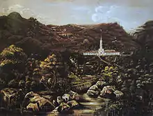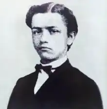 After completing his first studies at his mother's house with private teachers, Pena later went on to study at the Caraça School at the age of ten in 1857.[4] The school, isolated from the major urban centers, was maintained by the Lazarist priests and Pena's father was one of its most prominent contributors.[2][5] At the school, he had theology, ethics, philosophy, mathematics, geometry, history, rhetoric and foreign language classes. Pena finished his studies in the Caraça School on 16 January 1864 and later moved to the city of São Paulo to study at the Faculty of Law in 1866.[5]