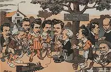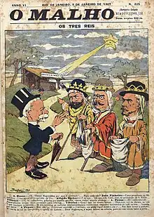 As president of Minas Gerais, Pena opposed the authoritarian government of president Floriano Peixoto and housed his opponents in the state, notably Olavo Bilac and Carlos de Laet.[26] With the outbreak of the Naval Revolt in 1893, admiral Saldanha da Gama, the leader of the revolt, consulted the citizens whether they wanted the return of the monarchy or the maintenance of the republic;[38] in response, Afonso Pena published his Manifesto dos Mineiros in the journal O Paiz on 11 December, in which he declared:[39][40][41]
