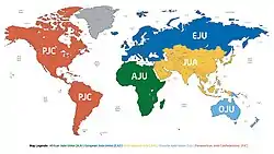 The African Judo Union (AJU) is the governing body of judo in Africa. It is one of the five continental confederations making up the International Judo Federation (IJF).[1] AJU was formed on 28 November 1961 in Dakar (Senegal).[2][3] AJU has headquarters in Madagascar and consists of 54 member federations.