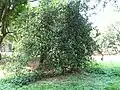 It is an evergreen small tree, growing to 6–18 m tall. The leaves are borne in opposite pairs or whorls of 3–4, each leaf blue-green, oval, 6–11 cm long and 3–5.5 cm broad. The flowers are produced in clusters on the stems. The fruit is a small, bright, orange, thin-skinned berry 1–4 cm diameter, with one single large seed; the small yield of edible fruit is pleasantly sweet, yet acidic, but also containing a latex that some people find unpleasant.[3][4]