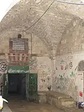 The Jerusalem community of Afro-Palestinians, 50 families[9] now numbering some 350 (or 450)[2] members, reside in two compounds outside the Ḥaram ash-Sharīf (west of the Inspector's Gate): Ribat al-Mansuri and Ribat of Aladdin (Ribat al-Baseri/Ribat Aladdin al-Bassir/Ribat Al'a ad-Deen Busari).[3][10][2] They were built between 1267 and 1382[2] and served as ribats (hostels for visiting Muslim pilgrims) under the Mamluks. This distinctive enclave has been called Jerusalem's Little Harlem.[11] During the Arab Revolt of WW1, the Ottomans converted the compounds into jails — one known as 'the Blood Prison' and the other as 'the hanging prison' — where prisoners were detained and executed.[12] The community has restructured part of this former prison to create a mosque.[13] Until the Israeli occupation that began in 1967, they were employed as guards at the Ḥaram ash-Sharīf, a function now taken over by Israeli soldiers.[10]