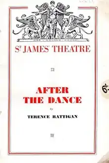 After the Dance is a play by Terence Rattigan which premièred at the St James's Theatre, London, on 21 June 1939. It was not one of Rattigan's more successful plays, closing after only sixty performances,[1] a failure that led to its exclusion from his first volume of Collected Plays.[2] Critics have tended to attribute this relative contemporary failure to the play's darkness which may have reminded audiences of the approaching European war.
