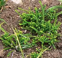 Grown in gardens, it is actually remarkably tough and waterwise. Once established, it withstands both drought and frost. With its striking white flowers and its tiny, dense, symmetrical foliage, it makes a very attractive plant for coastal gardens.[2][3]