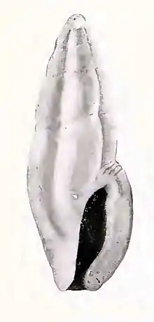 The length of the shell attains 6 mm, its diameter 2.5 mm.