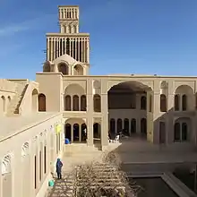 Aghazadeh Mansion (Persian: خانه آقازاده) and its windcatcher was built during the Qajar dynasty and is located in Abarkooh, Iran.[1] This building is registered as a national historical monument in Iran[2] and since 2015, the facade of this building has been portrayed on the 20,000 rial bills.[1]