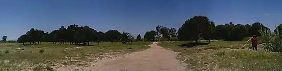 Its seaside is the continuation of Kalyves Polygyrou's with a very long sandy beach, after the river Olynthios delta, including Papa Aloni beach and Portes before Nea Potidea.