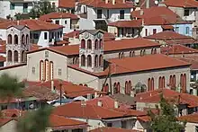 The village's history dates back to the 14th century when inhabitants moved inland from the sea because of repeated attacks by pirates.[2] A likely position of a previous settlement can be found 2 km away on the coast at Pyrgos Beach, where remains of a watchtower presumably of Byzantine Greek origin can be found.