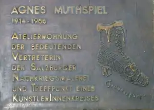 - ↑ Claus Maria Meyer; Peter Krackowizer; Andrea Loidl (eds.). "Agnes-Muthspiel-Weg". Dr. Franz Martin: Salzburger Straßennamen. Verzeichnis der Straßen, Gassen, Plätze, Wege, Brücken, Tore und Parks mit Erklärung ihrer Namen. Salzburger Nachrichten Verlagsgesellschaft m.b.H. & Co.KG. Retrieved 15 June 2021.