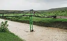 Evidence given by Italian aerial photographs of the catchment, taken in the 1930s show that 51% of the catchment was covered with woody vegetation (against 45% in 2014). This vegetation could slow down runoff and the runoff coefficient was smaller (8% in 1935 against 12% in 2014). As a consequence, discharges in the river were less and the river was narrower than today.[5] Up to the 1980s, there was strong pressure on the environment, and much vegetation disappeared.[6] This river had its greatest discharges and width in that period. The magnitude of floods in this river has however been decreased in recent years due to interventions in the catchment. On steep slopes, exclosures have been established; the dense vegetation largely contributes to enhanced infiltration, less flooding and better baseflow.[7] Physical conservation structures such as stone bunds[8][9] and check dams also intercept runoff.[10][11]