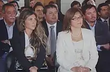 The completely restored building opened on 23 January 2009, one hundred years after its original construction. An exhibition of photographs by Ana María Encina Lemarchand was the first to be staged in the restored building.[21] In June 2009, a non-political organization called the Corporación Cultural de Pichilemu (Pichilemu Cultural Corporation) was formed to manage the cultural center,[22][23] in coordination with the local government.[6] The center's inauguration was supposed to take place in March of that year, with President Michelle Bachelet Jeria in attendance;[21] however, it was postponed until 27 January 2010.[24][25] Bachelet toured the rooms of the cultural center with Mayor Roberto Córdova,[26] and later said that the center "[is] to merge itself with the origins of modern Pichilemu, restoring the facilities to do what is so necessary: to make room for the creativity, talent, imagination, dreams of so many young and many people."[24][n 1]