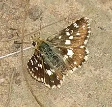1. โ†‘ Zhang, Jing; Brockmann, Ernst; Cong, Qian; Shen, Jinhui; et al. (2020). "A genomic perspective on the taxonomy of the subtribe Carcharodina (Lepidoptera: Hesperiidae: Carcharodini)". Zootaxa. 4748 (1): zootaxa.4748.1.10. doi:10.11646/zootaxa.4748.1.10. PMC 8018707. PMID 32230093.