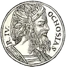 ![]() Ahaziah from Guillaume Rouillé's Promptuarii Iconum Insigniorum, 1553 | |||||