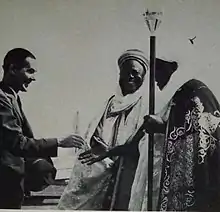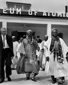 Premier of Northern Nigeria Sir Ahmadu Bello far right, and Muhammadu Sanusi I leaving the Atomic Museum Oak Ridge in 1960