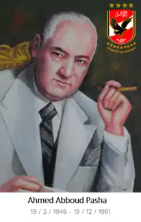 Abboud Pasha was one of the longest-serving Presidents of Al Ahly SC, Egypt’s oldest and most popular club, serving over a sixteen year period that is often described as 'Ahly’s Golden Years’. Al Ahly decided to participate in the Egyptian national league for the first time in 1948, and the club then proceeded to win 9 consecutive championships.[15] Abboud Pasha refused all government subsidies and supported the club from his private fortune.[16] He built a swimming pool complex for the players and acquired additional land so that the club’s grounds extended all the way to the Nile Corniche.[17]