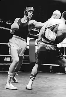 ![]() Ahmed Dine (right) fighting East Germany's Henry Maske | |