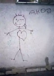 The Czech and Slovak ironic love of language contributed to the distribution of ahoj. In Slovakia ahoj-derivates are used in variety of different scenarios, such as the diminutive "ahojček", as a toast "ahojka", to a greater extent the plural-form "ahojte", as well as the grammatically correct we-form "ahojme sa".[58] In Czech as well as in Slovak ahoj is being slowly replaced by the modern-day form "čau", which comes from the Italian greeting ciao. This has been perceived to be the case since the Czechoslovak government allowed the Italian films to be shown in the 1960s.[59]