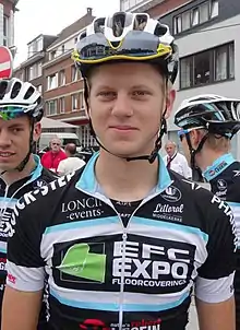 Aimé De Gendt (born 17 June 1994 in Aalst) is a Belgian cyclist, who currently rides for UCI WorldTeam Intermarché–Wanty.[3] In July 2019, he was named in the startlist for the 2019 Tour de France.[4]